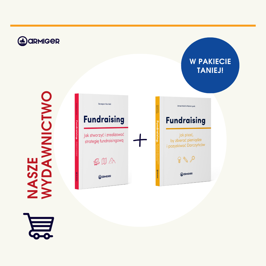 W tym pakiecie znajdziesz dwie pozycje z naszego wydawnictwa: Fundraising. Jak pisać, by pozyskiwać Darczyńców i zbierać pieniądze oraz Fundraising. Jak stworzyć i zrealizować strategię fundraisingową.